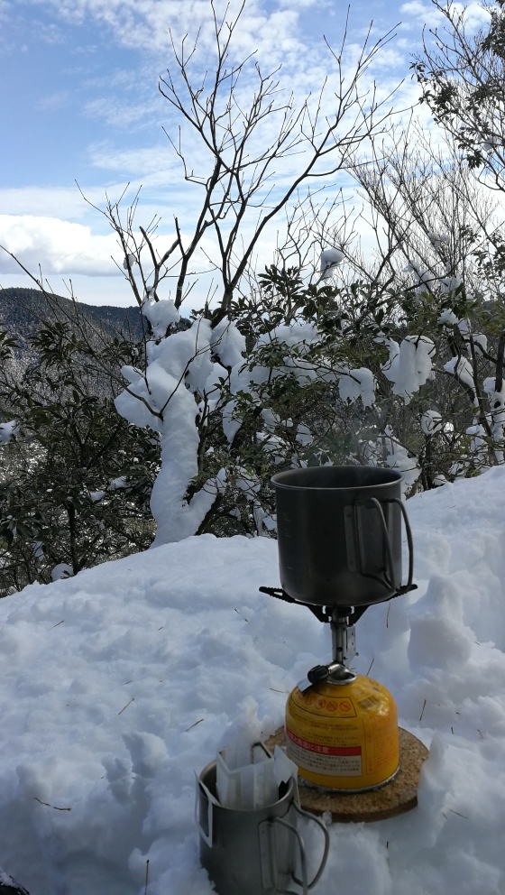 文三ハゲの鞍部へ一旦下り、綿向山への登りに備えて一服。こんな状況で綿向の山頂に立つことに意味がある