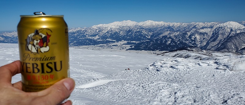 最後の急登で妙齢の男女ワカン2人組を抜いて広大な雪原に飛び出した。