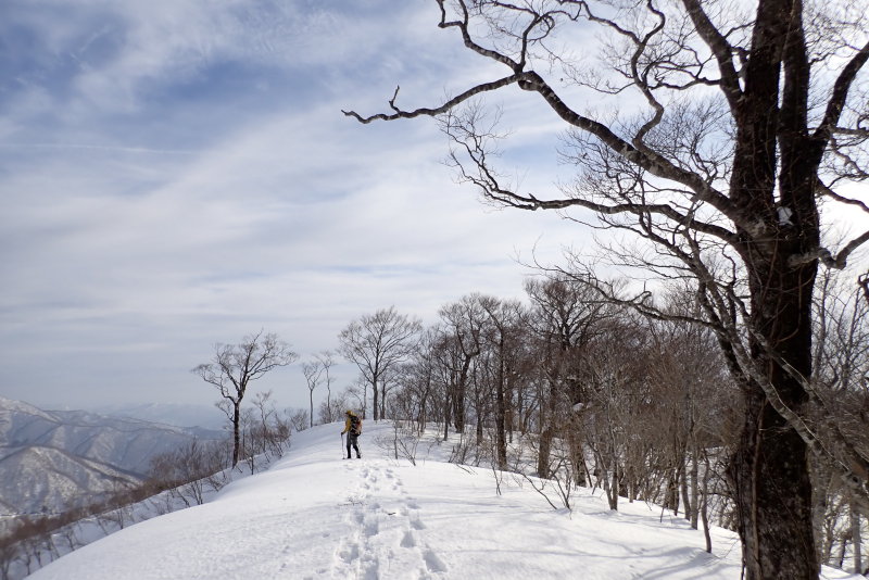 当然のごとく登山道はなく、積雪期限定の山だ。健脚の登山者なら南稜を経て経ヶ岳を目指す行程の通過点にしか