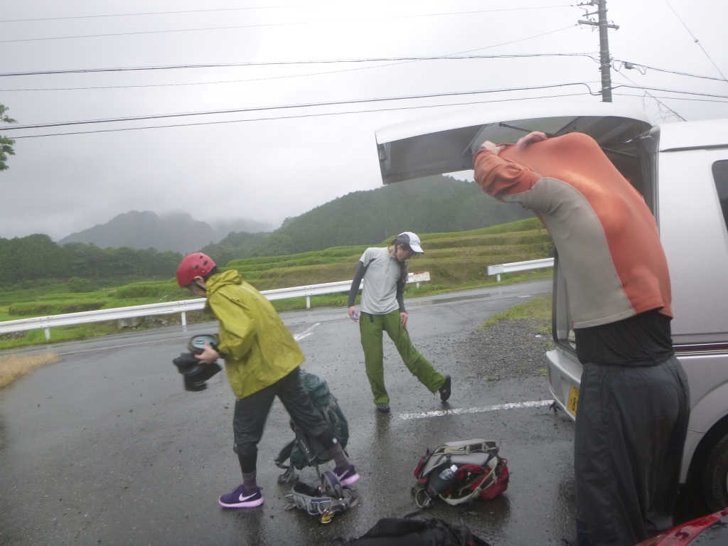 どうも最近のたろーさん沢行には雨で中止という選択肢はないらしい。今日も朝からパラパラ雨が降っているが、決行だ。