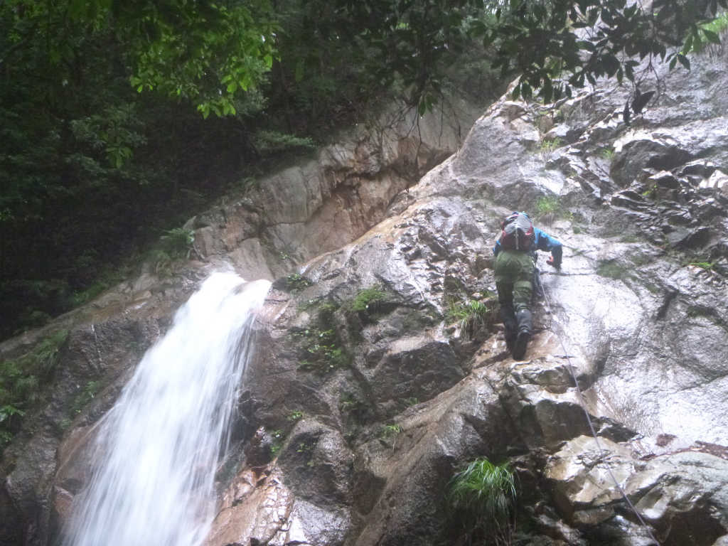 5m滝を登るたろーさん