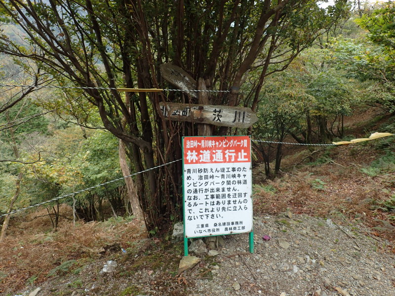 >時間的に楽な青川キャンプ場から治田峠へ上りたかったのだが、水害で谷も道も壊滅状態らしい。わたしもちょっと考えたけど、道の状況がわからないので止しました。