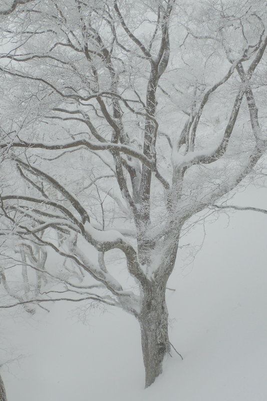神社から2時間ほどで水無山南峰に到着。誰にも会わないのはいいが、何にも見えない。天気が良ければここから綿向山のどっしりした姿が眺められるところだ。今日はまったくモノトーンの世界。これはこれで味があるというものだというのはほぼ負け惜しみである。