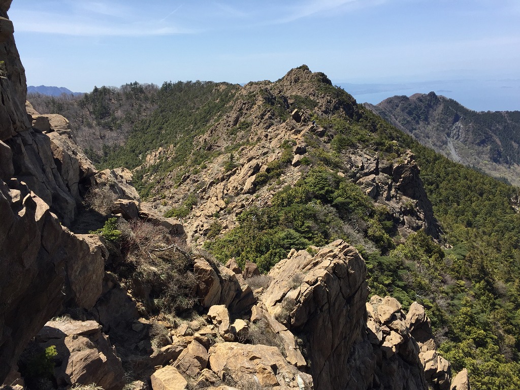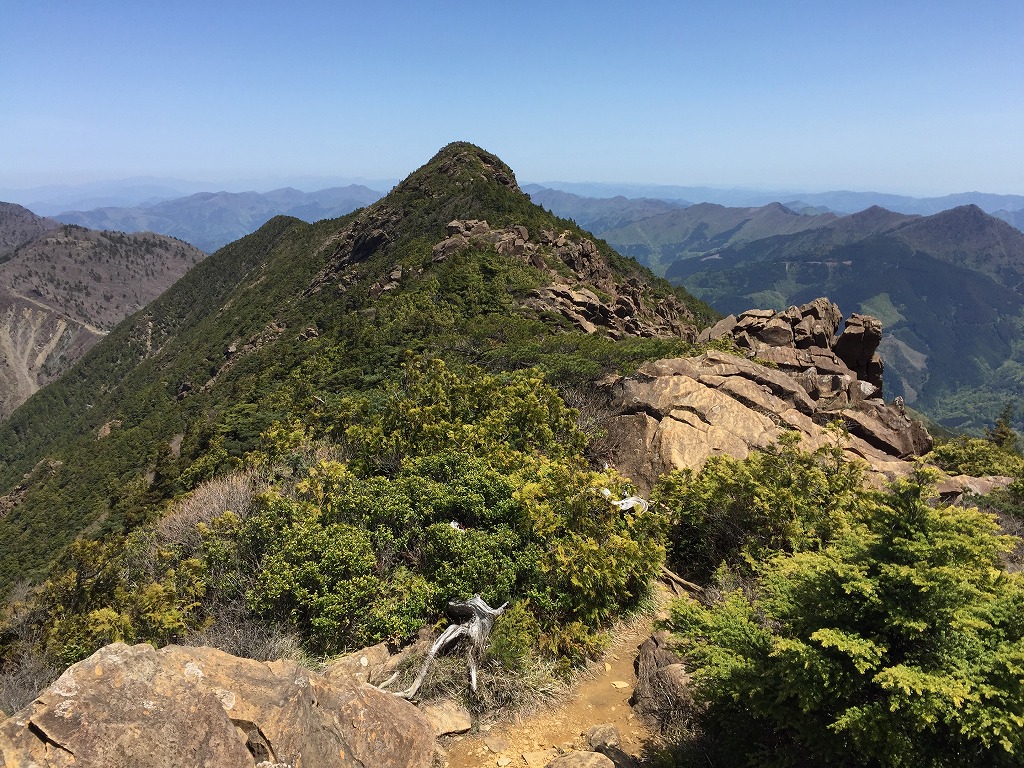 東赤石山〜八巻山は絶好の好展望の岩場が続きますよね。足場は多いのですが、なかなかスリリングですよね。私が訪れた時は平日で、周りに人が誰もいなかったので、万が一のことがあったら・・・と緊張しました。