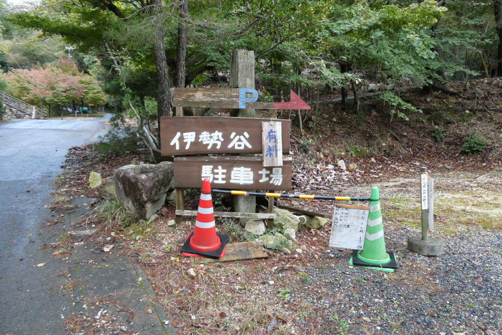 >朝明駐車場の客引き(誘導)を横目に見て伊勢谷小屋の駐車場へ。ここはずっと気になっていたが使うのは始めてだ。