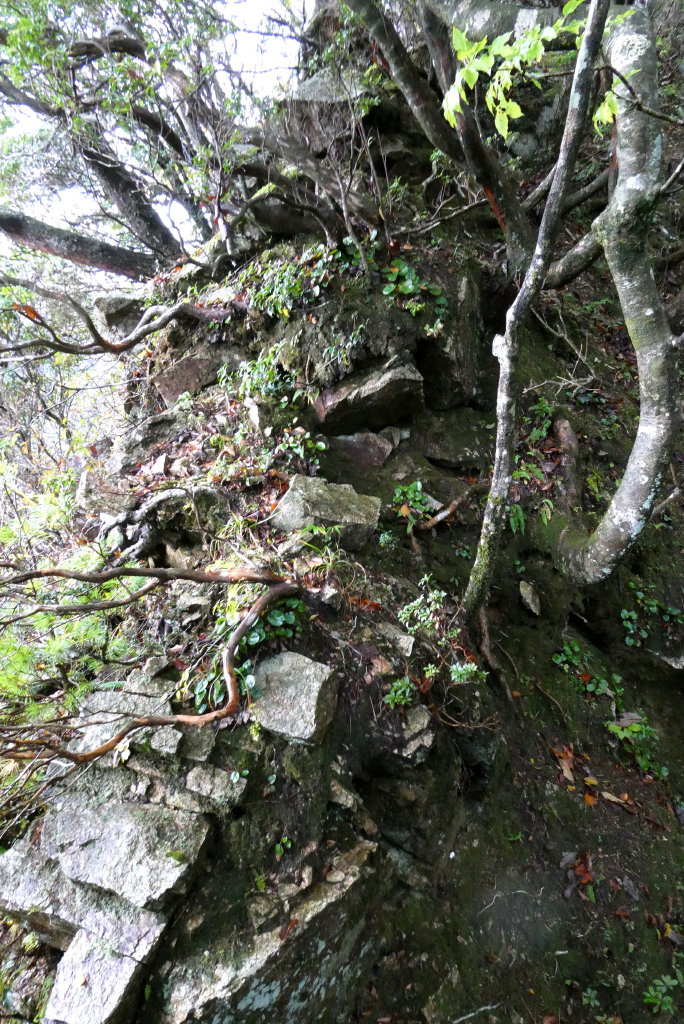 次に現れた岩壁は同様に右斜面を斜上して行くが、踏み跡と呼べるものもなく、慎重に一歩ずつ足を運ぶ。