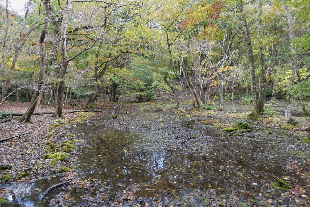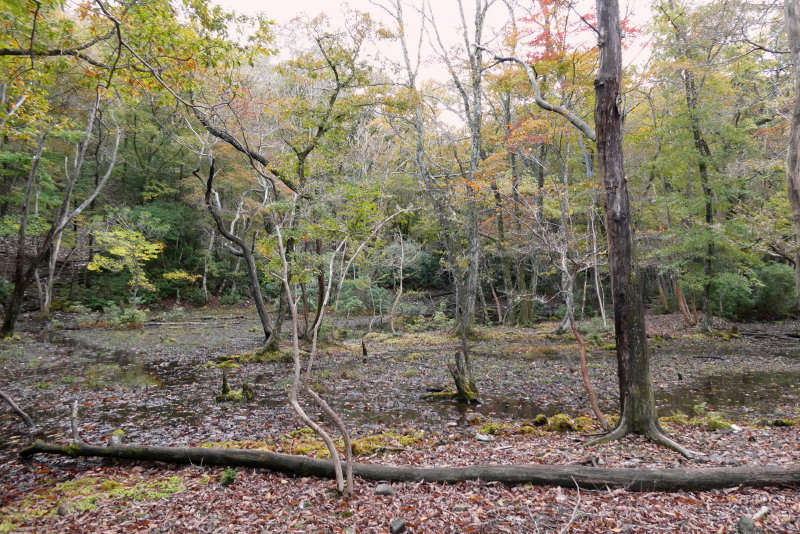 峠からまっすぐ下ってしまうのも芸がないのでブナ清水に立ち寄ることにする。紅葉はまだまだこれからで、
