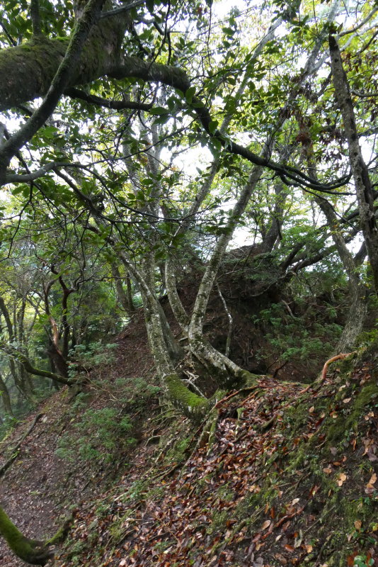 >急斜面に取り付いて尾根に乗ると、明瞭な踏み跡があり特に難儀することもない。