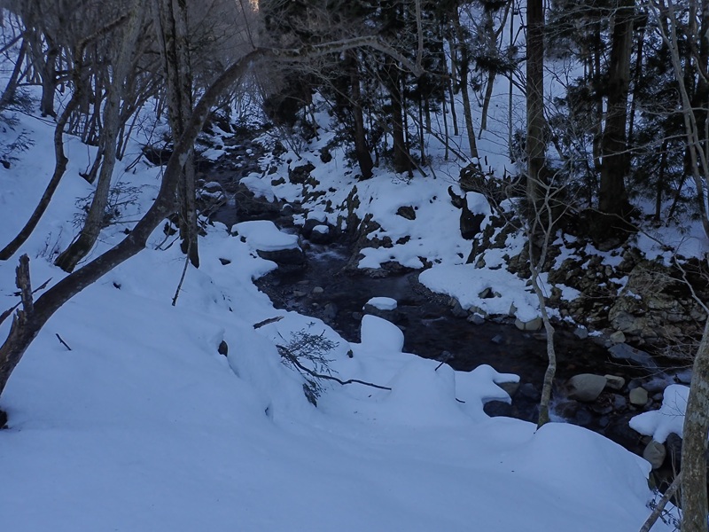 緑水さんが出会った山師の幽霊や「鈴鹿の山と谷」にふれられている奇異なおそろしい光景が見られた流域になる。天気の良い雪山ではそんな感じはしないが学生時代にテン泊した飯場跡には感じるものがあった。