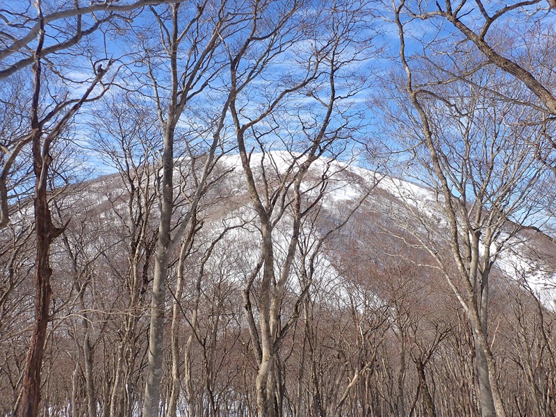 七人山雪原を歩き七人山に近づくと青空を背景に東雨乞のドームの壁が迫ってくる。冬にここを歩いたことはないんですが、いい眺めなんでしょうね。