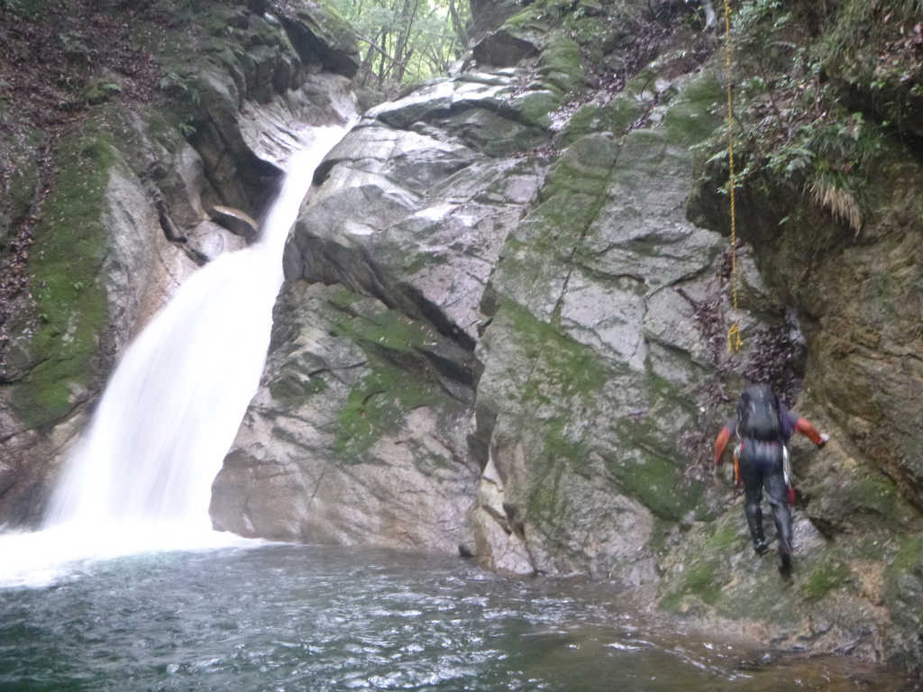 5m滝を登るたろーさん
