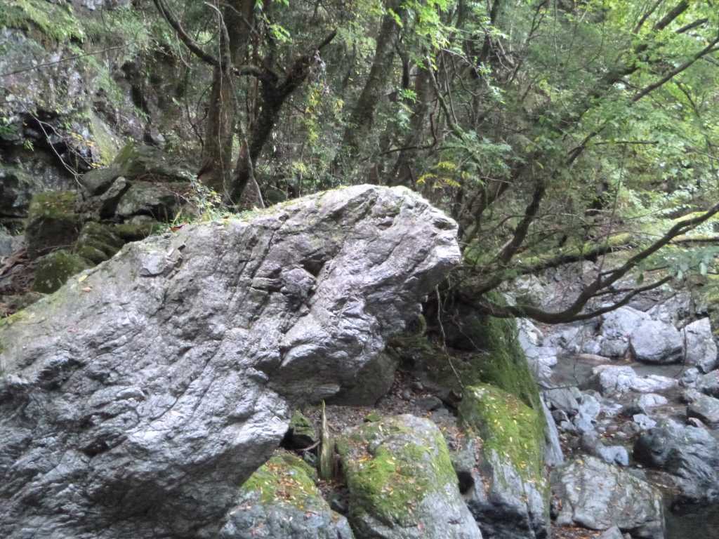 何度も歩いてるけど、そんな岩など記憶にござりません。というか、岩をそういう風に見ながら歩いてないな。岩がどんな性質の岩かは見てるけど。