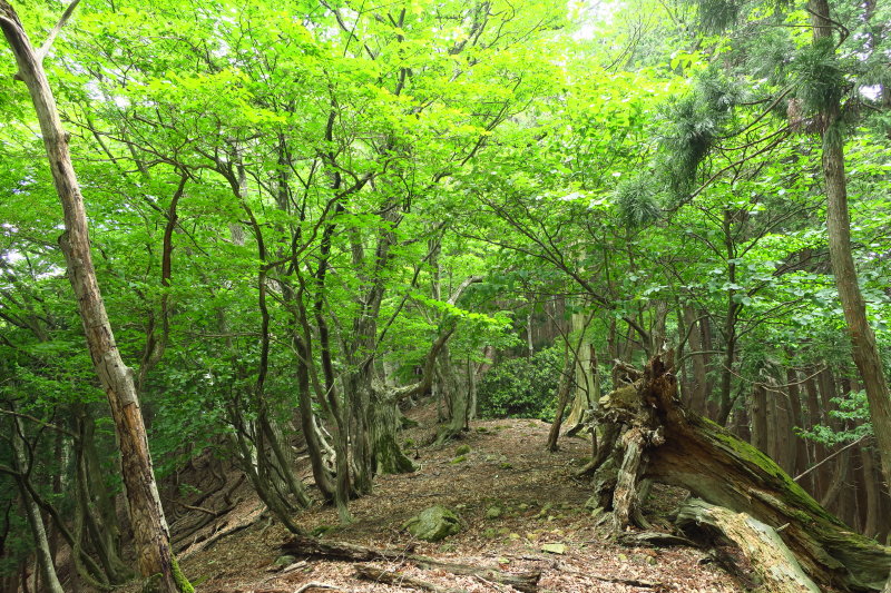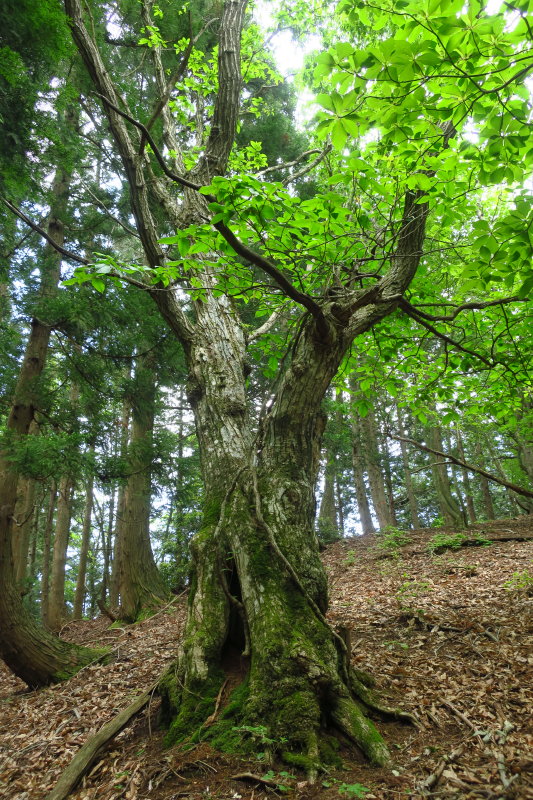 ここからは一部植林が見られるものの、大半は自然林で気分良く歩くことができた。但し、ブナの姿はほとん