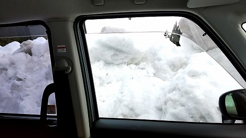 進行方向をさぐる。除雪が進んで舗装面が見えている。「どこまで車を上げるかで登頂の成否が決まりそう」という、いじましい考えが浮かんだ。これが命取りだった。