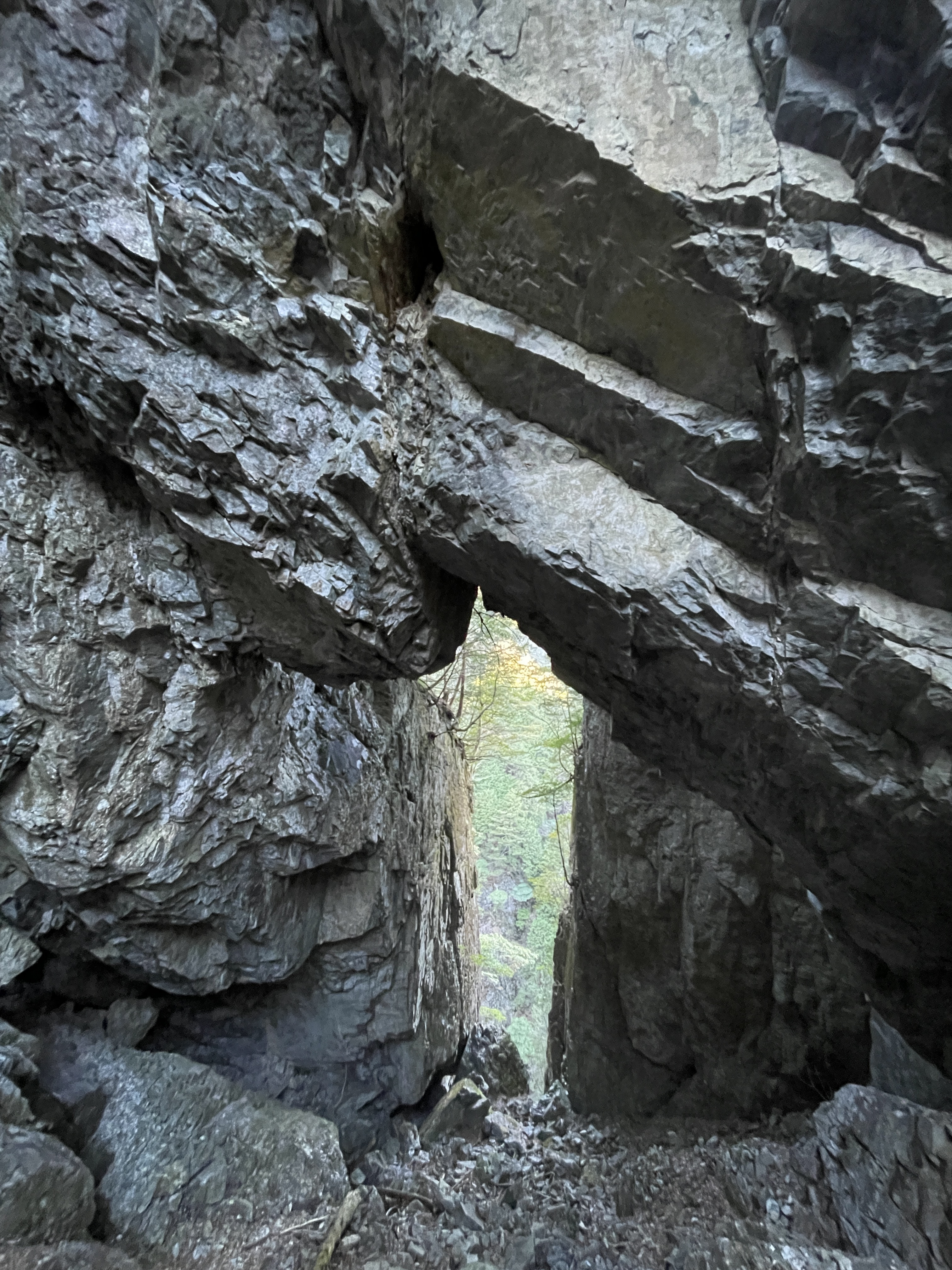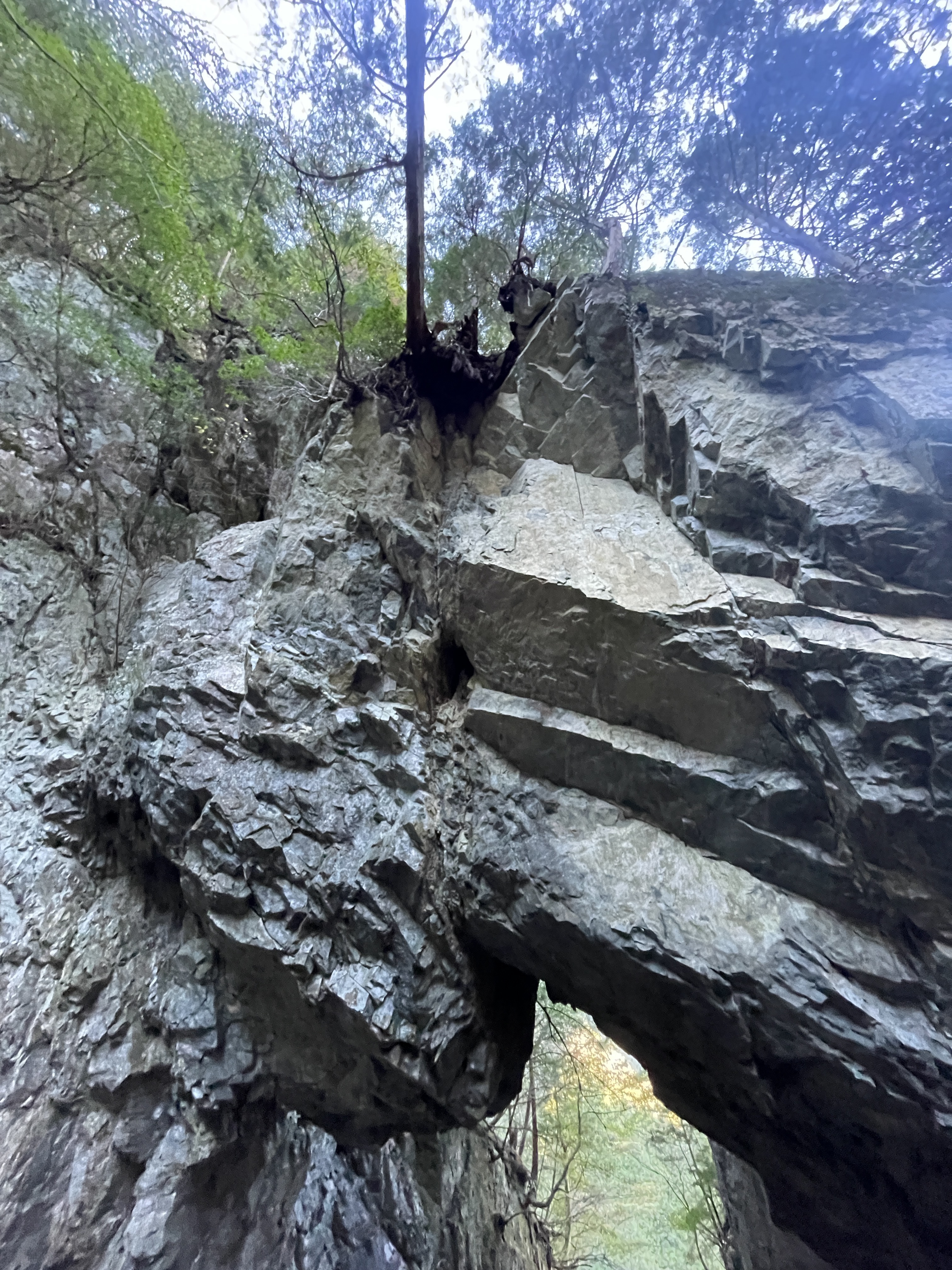 仙人嵓のテラスに立ち、念願の双門の滝を拝んだ。次に、巌双門を探して高度を落としていく。