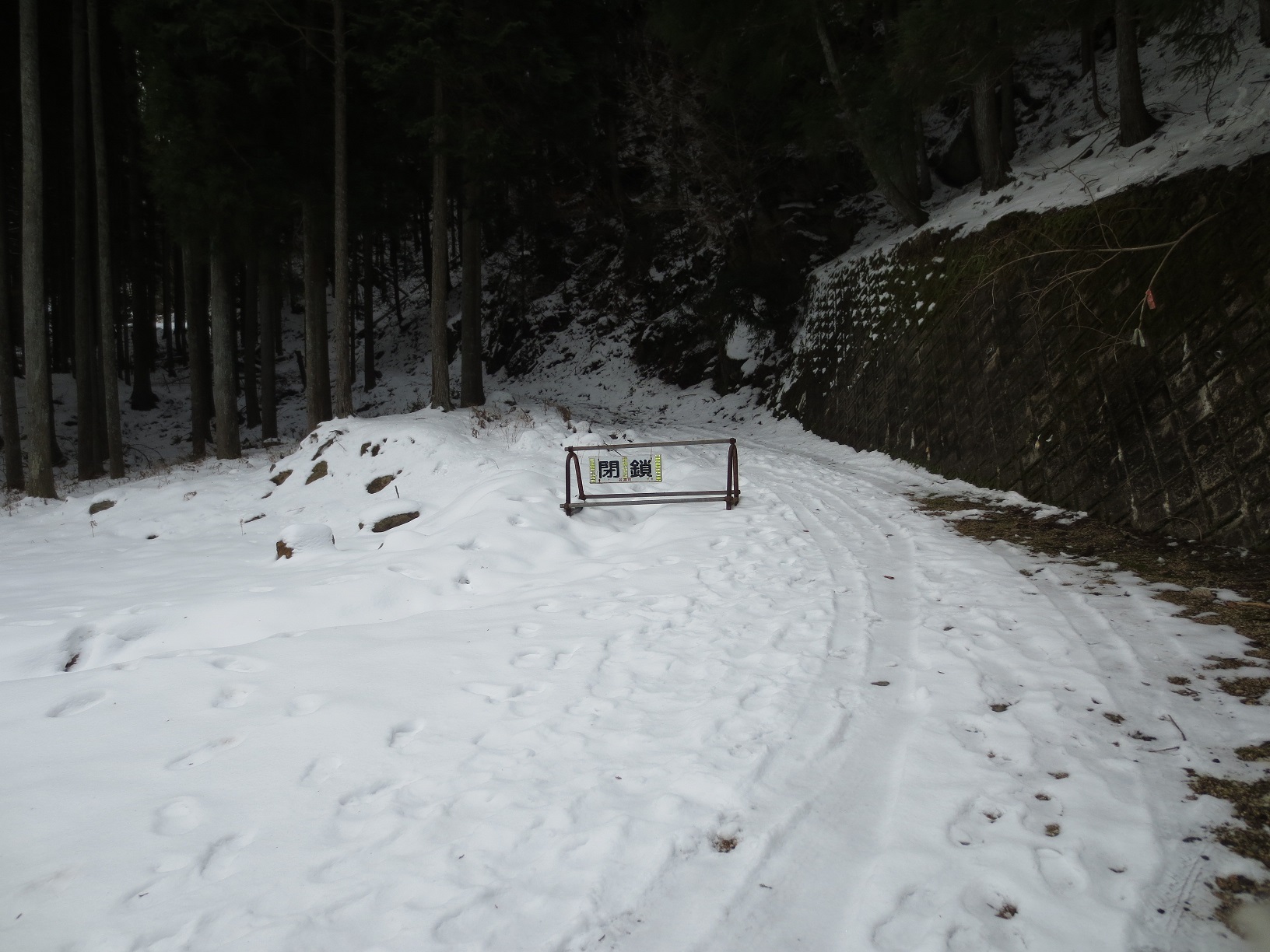 出発ではちょっと難しいなと思ったが遠いですねえと言ってお別れする。道は駐車場の西側の橋を渡ったところで完全に雪で