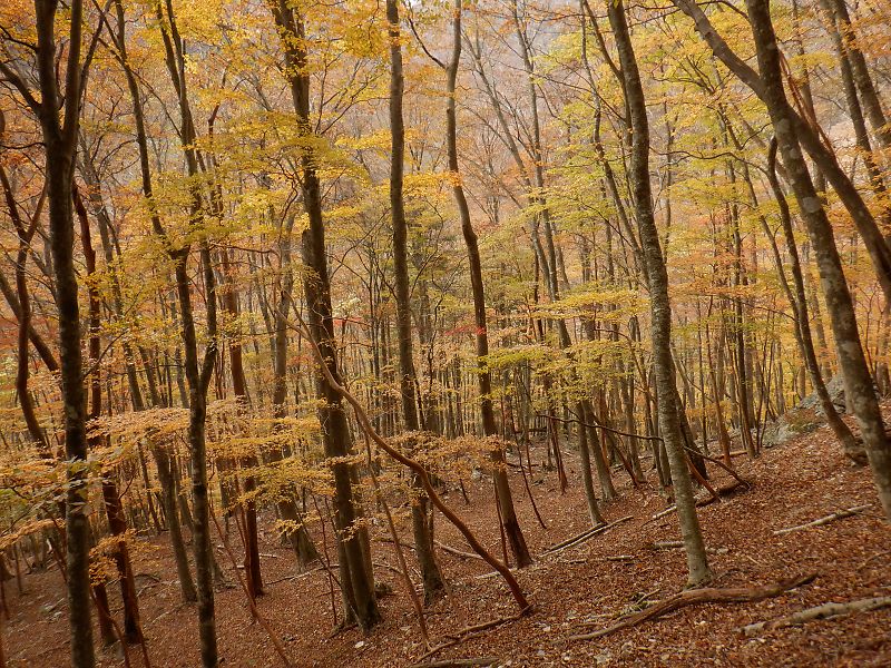 桧塚稜線上の紅葉は過ぎ、いまは一段下がった所が適期。