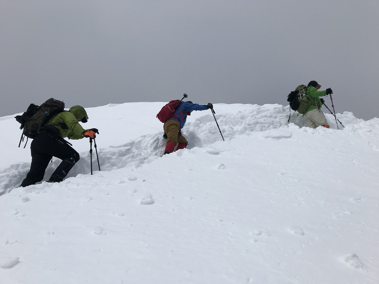 あんな急登の新雪ラッセル、見ているだけで疲れました。