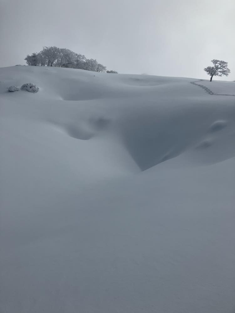 下雪なしの1m以上の積雪だったのでバランスを取るのが大変でした。新雪って下りにくいですか?スノーシューで新雪を下ると浮遊感があり私は好きです。もっとも雪の量が少ないと難しいですが。
