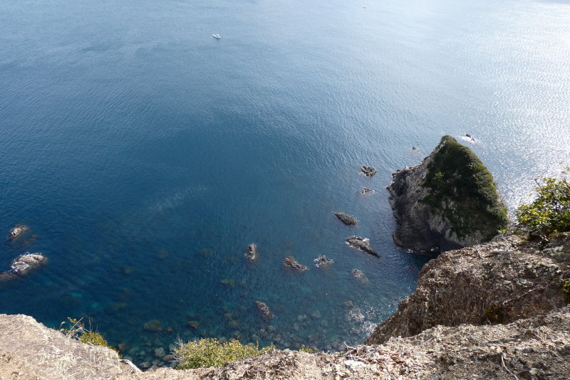 赤石鼻へ向かって断崖の上に付けられた道を進む。地形図で見ると海までは少し離れているのだが、尾根からは真下に見