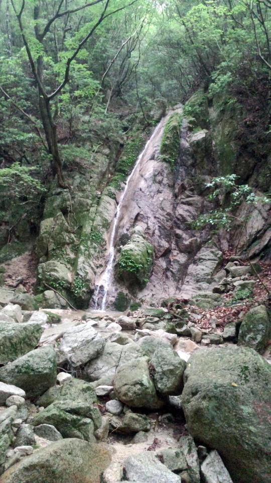 左岸から7~8m高さの細い一筋の特徴ある滝、帰ってガイドを見ると「ソーメンの滝」。7年以上前に2回はこのルートを通っているけど、記憶に無いな。