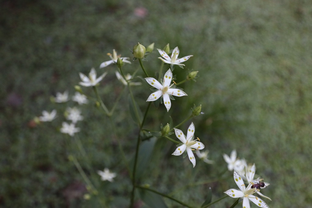 この鞍掛尾根をいいペースで下っていき鞍掛峠の地蔵に最後の挨拶をして急坂を下る。この道に休憩場所があるなんて思えんと副館長は言うがいいところがあるのです。しばらく下るとやがて巡視路への分岐が現れる。ほんの少しそこを登ると登山道からは全く見えない平地に出る。誰にも邪魔されないいいところで過去に何度か使わせてもらっている。ここに壊れた小屋があるのは何だろうか。まあいずれにしても最後の休憩だ。お湯を沸かしてコーヒを飲みサポさん差し入れのどら焼きをいただく。もう後ここから10分もかからずに駐車地である。ゆっくりとして共通の知人の話や何かで盛り上がる。30分余の休憩後、おもむろに腰を上げて歩けばすぐに駐車地。その手前にまたアケボノソウがあり最後の写真を撮る。