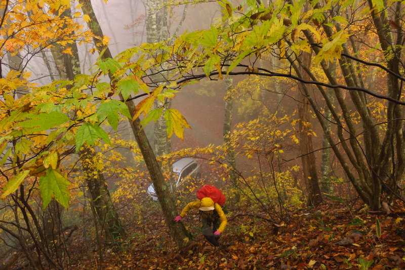 歩き始めから錦繍の世界でしたね。朝霧に浮かぶ、シロモジ、タカノツネの黄葉は、息をのむうつくしさでした。