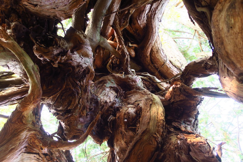 これだけ奇樹が多いのは風が強いとか何かが影響しているのでしょうか?これでもかというぐらいのヒノキの怪木、奇木を見ながら、目的の巨樹が登場する時を待った。