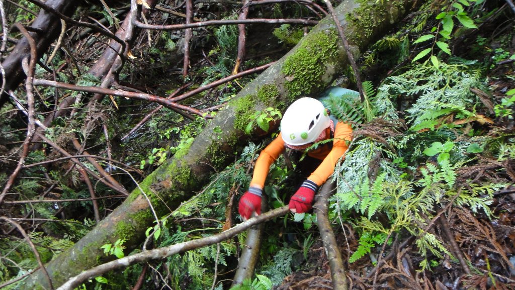時計をみると14時が過ぎておりいつまでも滝に付き合ってられず稜線直下の尾根に逃げた。