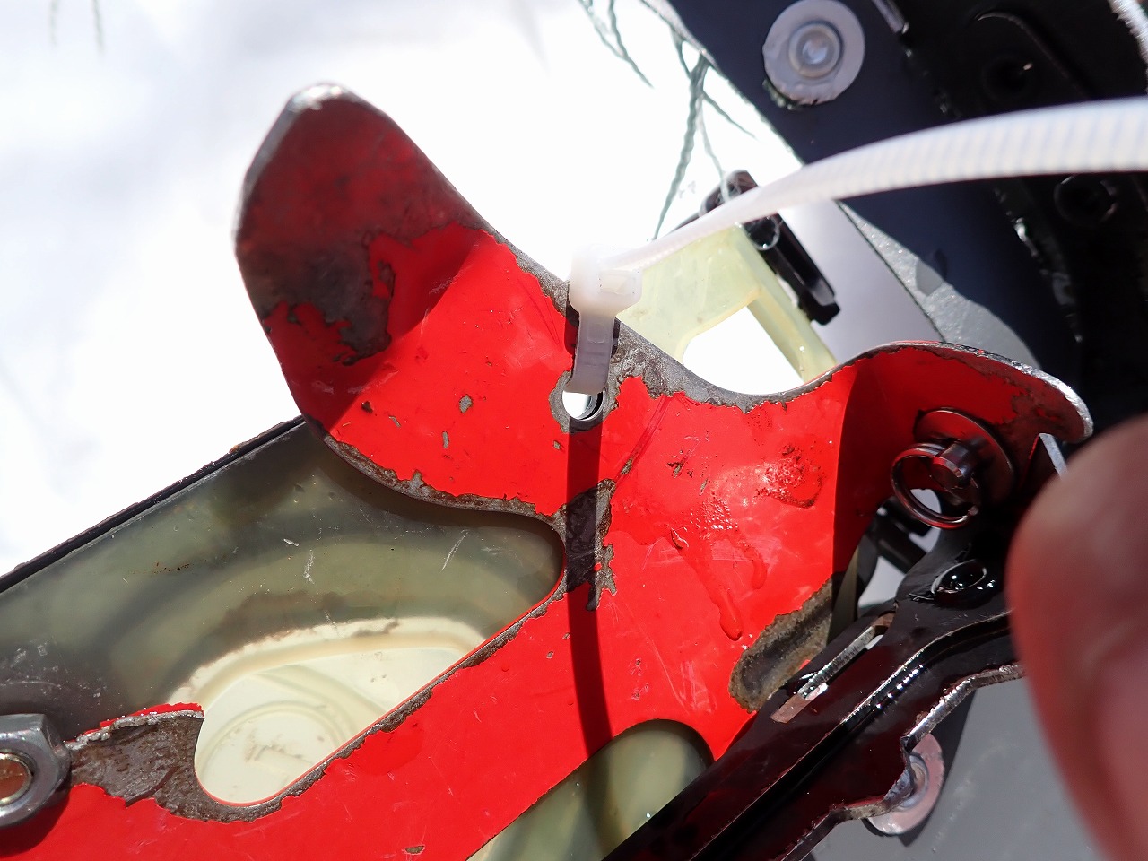 折れたスノーシューの爪部分は、たまたま入手していた旧式のスノーシューの爪が