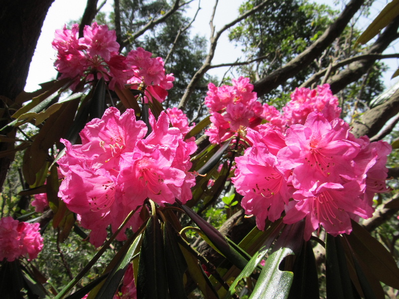 するとP405の次のピークで沢山咲いているではないか、これはいいやと写真を撮る。数年前シャクナゲの当たり年だったときこの先のP487ではトンネルになる位の花が咲き居合わせた人と「こんなに近くでこんなシャクナゲ見られるなら遠くに行く必要ないですね」なんて言葉を交わしたのを思い出す。それから毎年見に来るようになったのだ。