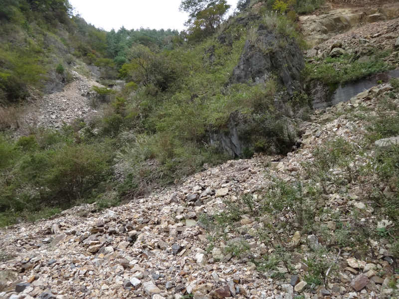 沢からの岩くずで埋め尽くされる