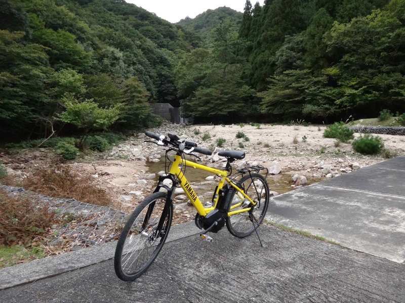 林道は奥の沢出合いまでは舗装もよく、快適にアシストも効いて8段変速の3段ぐらいで座ったままで漕いで登ることができる。時速も8km/hぐらい。