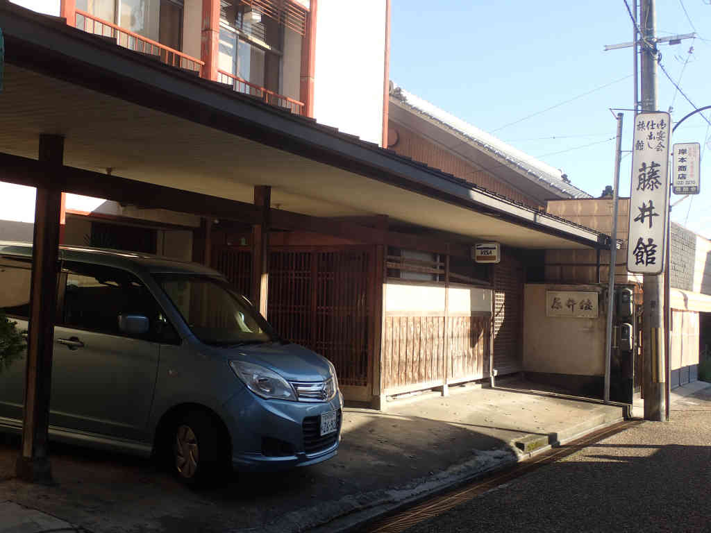 一旦、JR五条駅まで行き、宿を通り過ぎたことを知って少し戻った。今日の宿藤井館は昔の街の中心部、大和街道近くにあった。古いが昔は立派だったと思われる建物で、今は老夫婦二人だけで切り盛りしている。奥さんらしい老婦人が2階の部屋まで案内してくれた。 2階から見下ろすと昔は立派だっただろう中庭があり、その中庭に面して今は使われていないと思われる広い宴会場がある。おそらく水運などで栄えていた頃はここの宴会場で商人たちの酒宴が賑やかに行われたのだろう。今は、観光客などほとんどこないようで、作業員の人たちのための宿泊所になっているようだ。私が泊まった時も、作業員らしい男性3人が同宿だった。