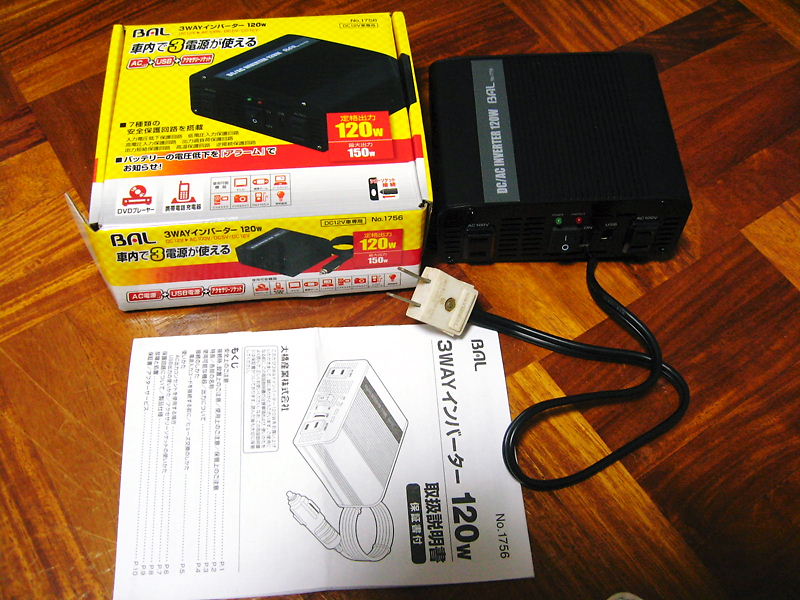 で買いました、12Vインバーターをね。