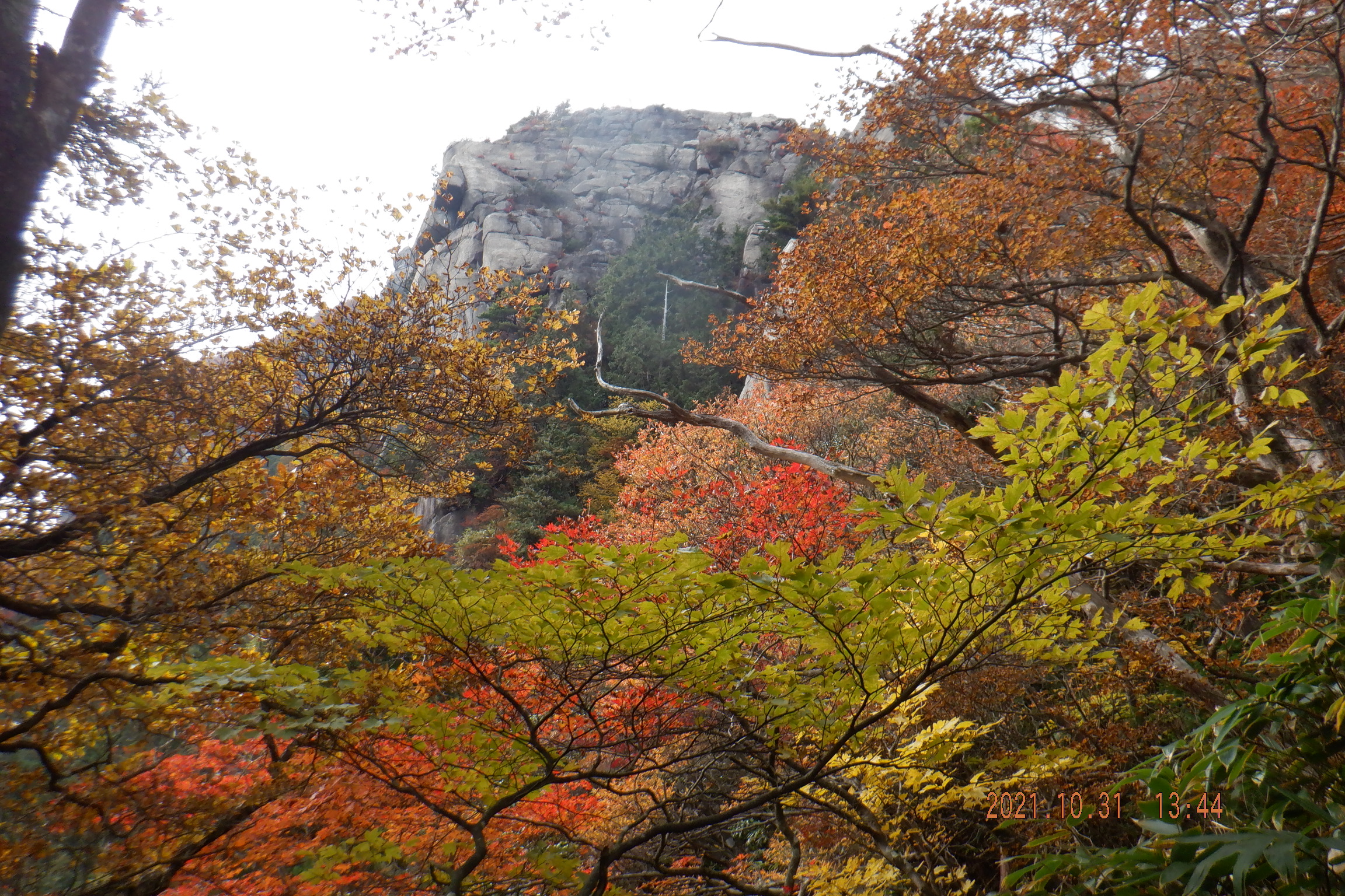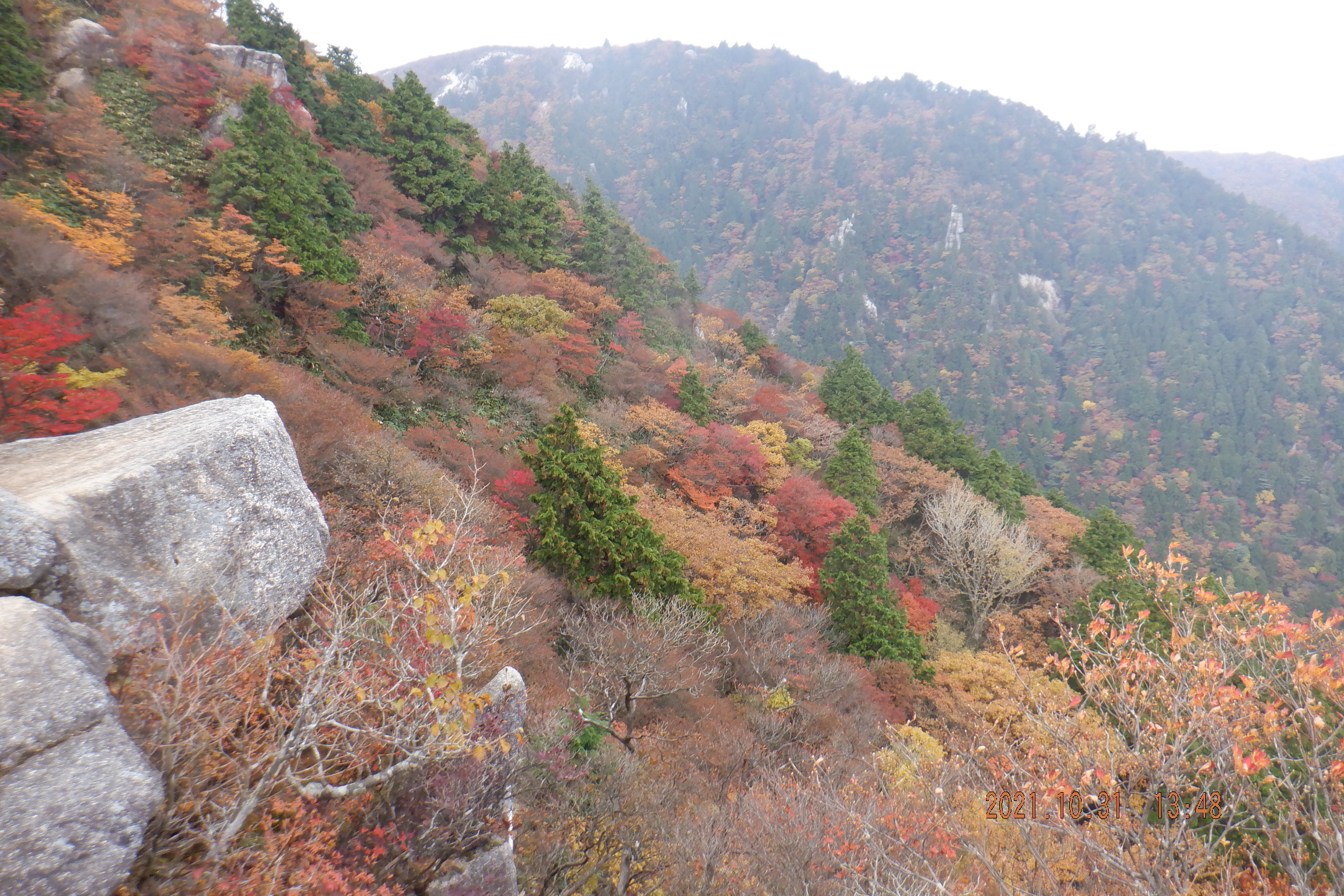 富士見台に上がると観光客が富士見岩から下を眺めていたので行ってみると絵ハガキに出て来るような紅葉を見ることが出来ました。