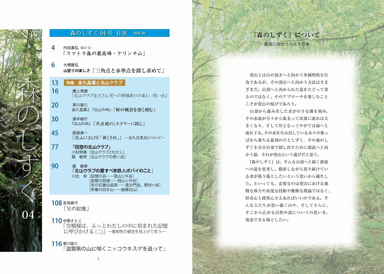 今号の特集は、これ無くして京都北山は語れない、金久昌業と北山クラブの思い出と考察です。