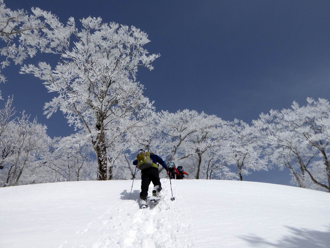 です。登りは樹氷をまとったブナが青空をバックに輝いていました。