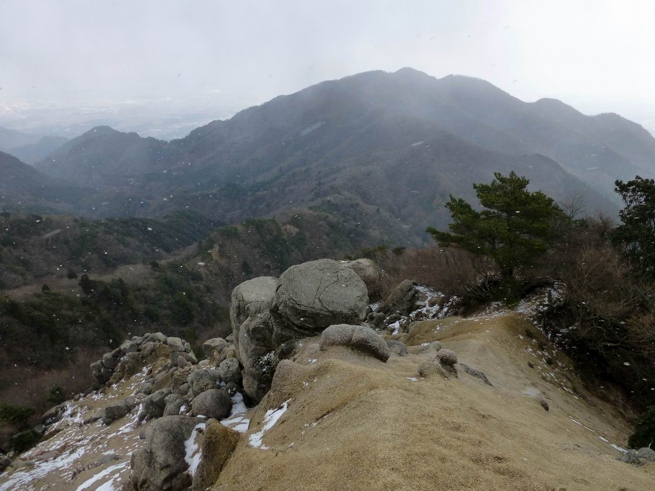 には高度差のほとんどない3つの峰がある。①北方に大展望をもつ北の頭(910m)、②大鳥居と三角点があり南方の展望がきく本峰(906m)、③椿大神社の奥宮を祀る最高点(915m)の3つだ。この順に3つのピークを回ってみた。