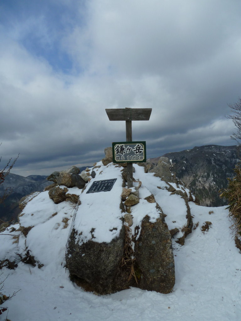 出発から約5時間で鎌ヶ岳山頂に到達したが、これは従前とほぼ同じペースである。すでに雲が広がってきて青空がなくなってしま