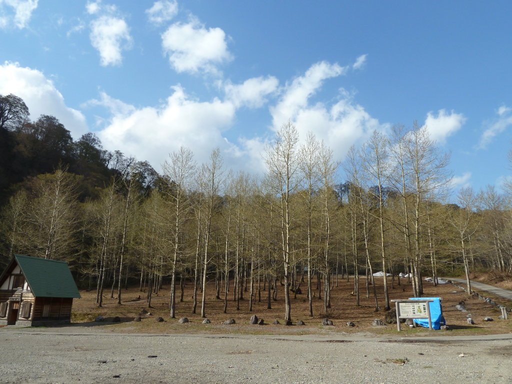 DOCに跨る前に登山口付近を散策してみる。小屋の関係者だろうか、向こうの方で木に向かって何か作業をしていた。