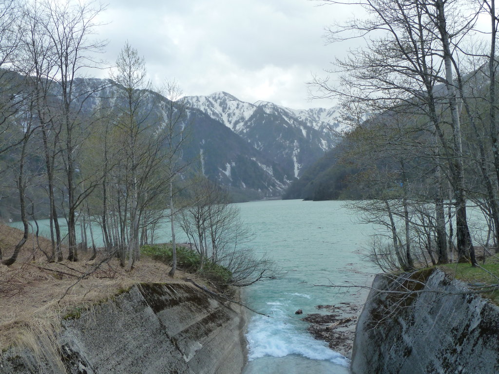 白水湖は上から見たよりはすこし浅い緑の水の色に見え、その奥に別山東尾根の山々がひっそりと佇んでいた。