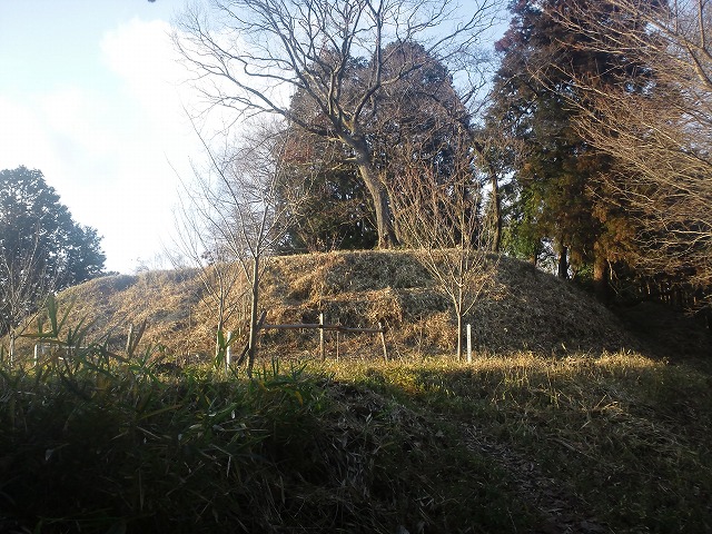 ここで自転車を降りて歩くことにする.もうだいぶ登ってきてるはずだし,どう考えても40分もかからんだろう.竹やぶを進むと古井戸と石垣が現れる.しかしこれはどう考えても戦国時代のものではないであろう.史跡城山城跡の石柱を過ぎて三好山へ6分の標識から2分もしないうちに山頂に到着した.