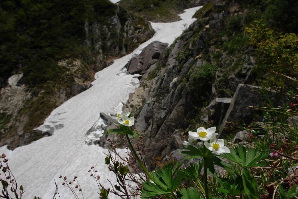 雪渓の端を伝って六ノ沢出合に着いた時にはホッとした。が、のんびりしてはいられない。