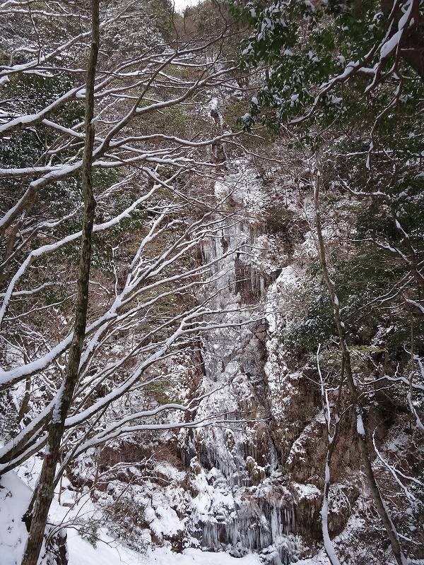 水沢峠直下の対岸にすばらしい氷瀑がある。このコースのビューポイントだ。氷の壁の滝はいくつも見てきたが、ここの氷瀑は上部まで何百というツララで見事である。