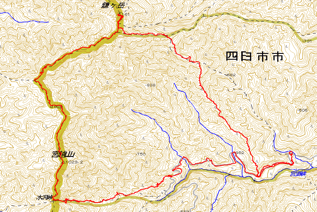 【 ルート 】宮妻峡8:10~9:50水沢峠~10:30水沢岳鎌尾根~12:35鎌ヶ岳13:20~14:00ジャリヶ谷左岸尾根~15:10宮妻峡