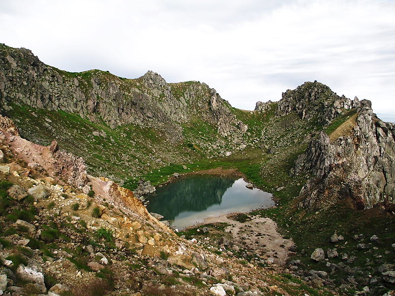 火口湖に降りて行くよ
