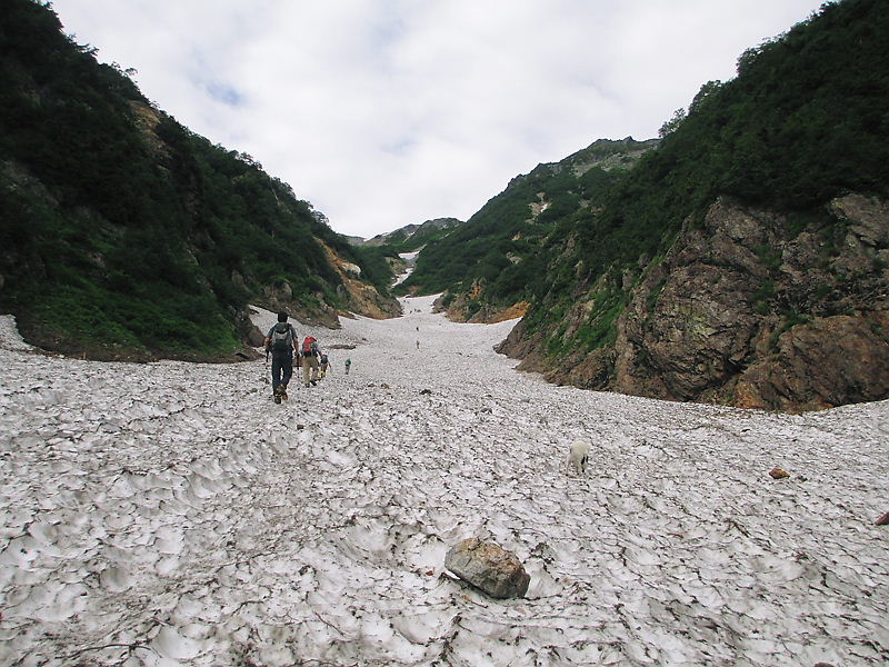 アワビを小脇に抱えて、ササ滑りだーーー尻下せば、前見えないよ、よく滑るワン