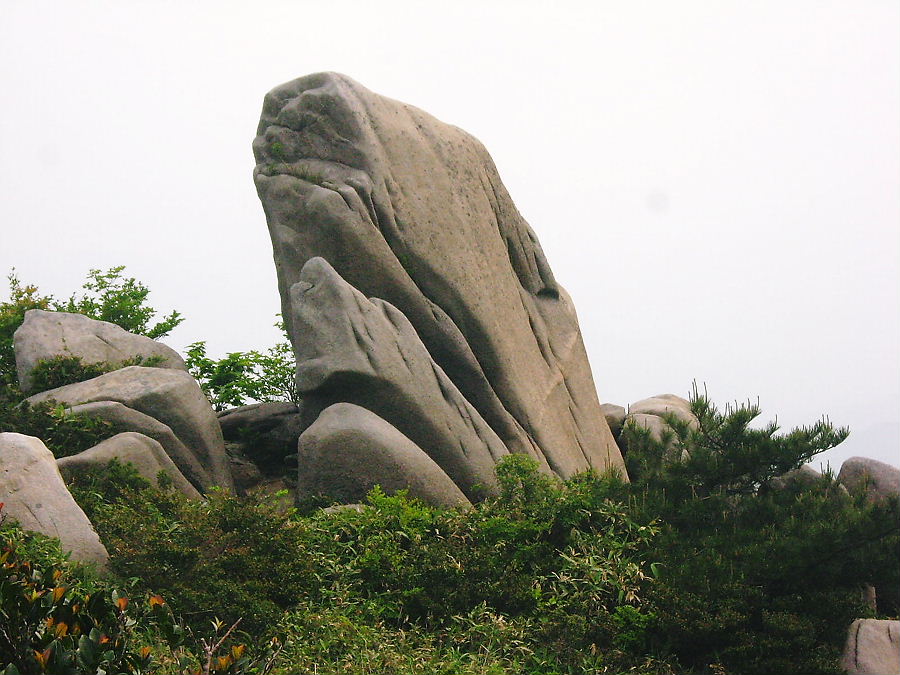 山頂へは大岩乗り越しから樹林中から山頂へと出る。