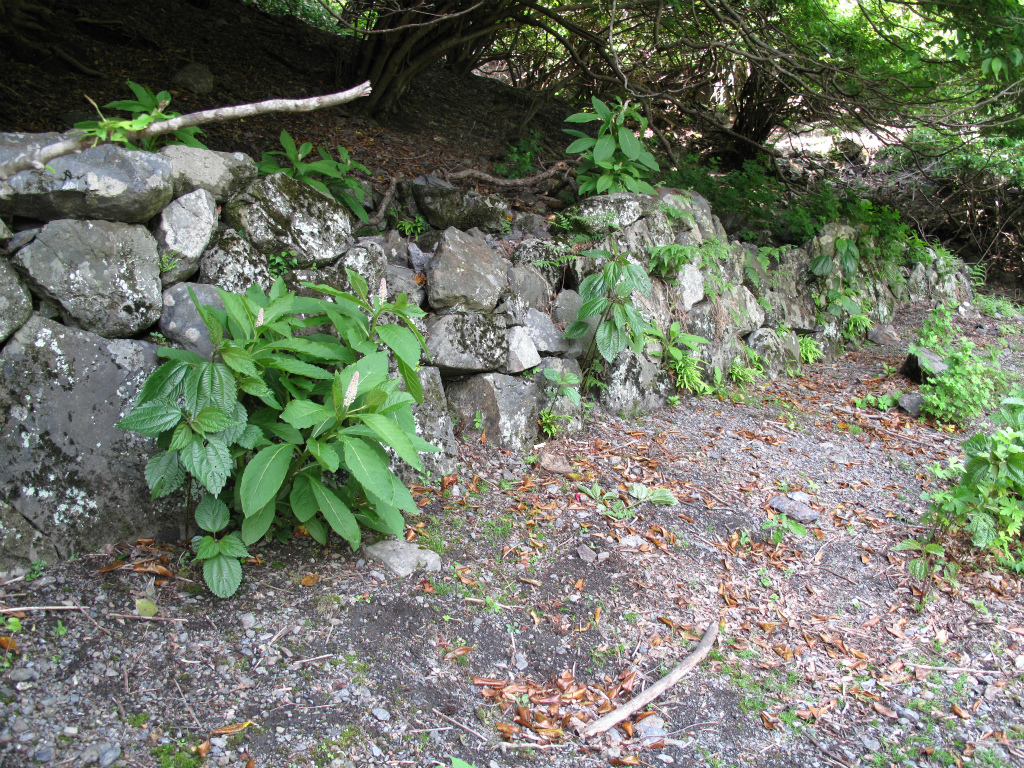 三鉱谷を少し上りかえすと三神谷の出合で、ここには精錬の焼き窯が4基(17釜)が以前は残っており治田鉱山遺跡の中でも注目すべき場所だった。1年前に4基中、三鉱谷側にあった2基(7釜)が土石流で流された所だ。三鉱谷は1年前より荒れていて心配だったが、ぎりぎり2基は残っていた。しかし、時間の問題のように思う。